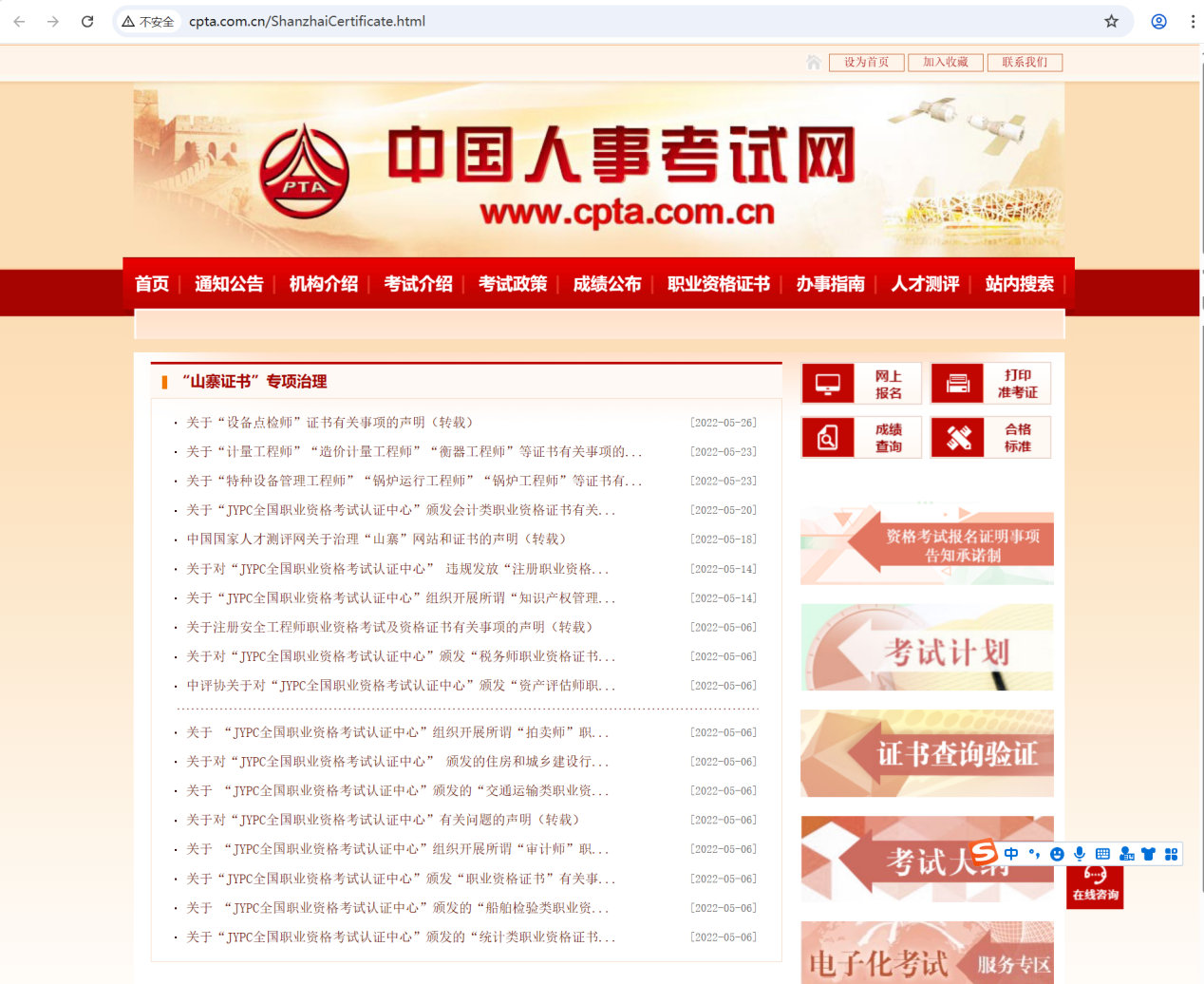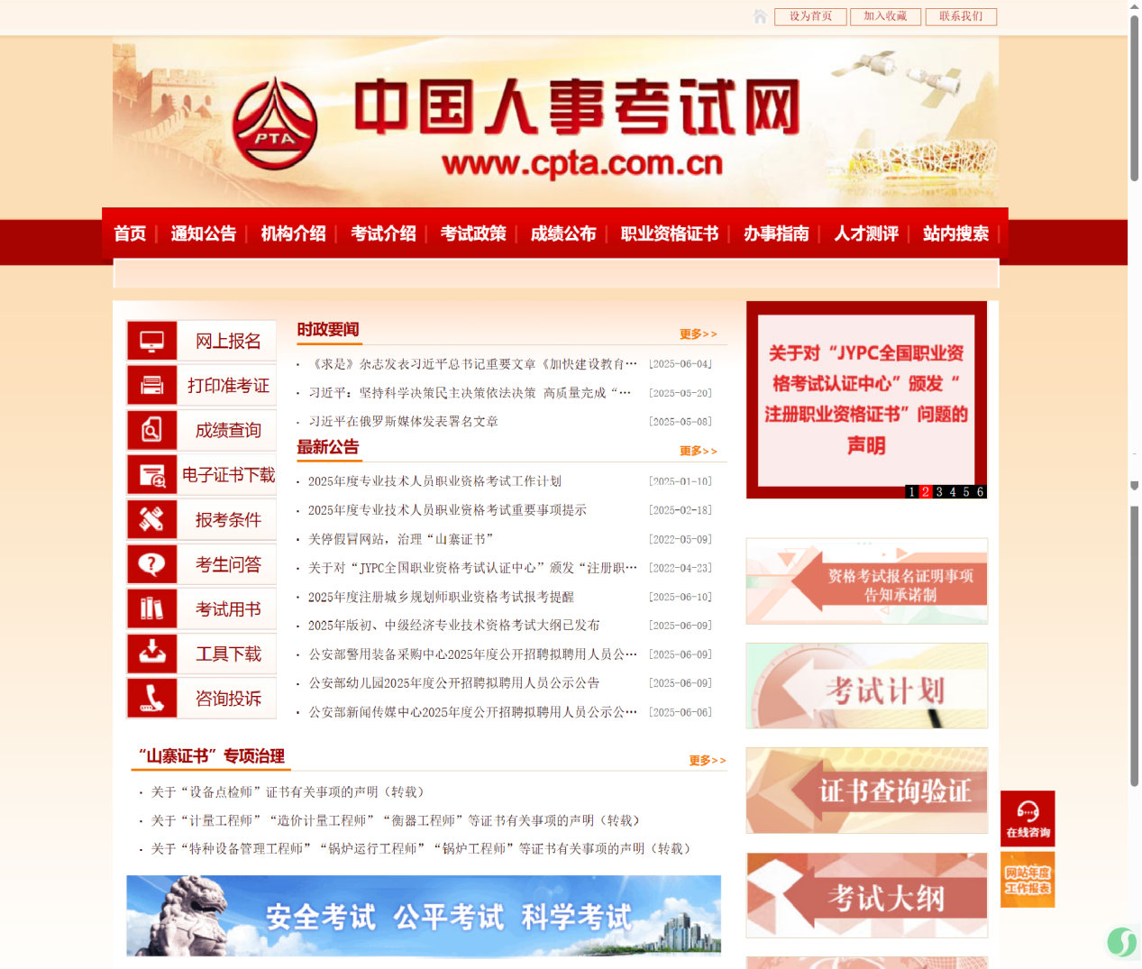 中国人事考试网(人社部人事考试中心官网)截图